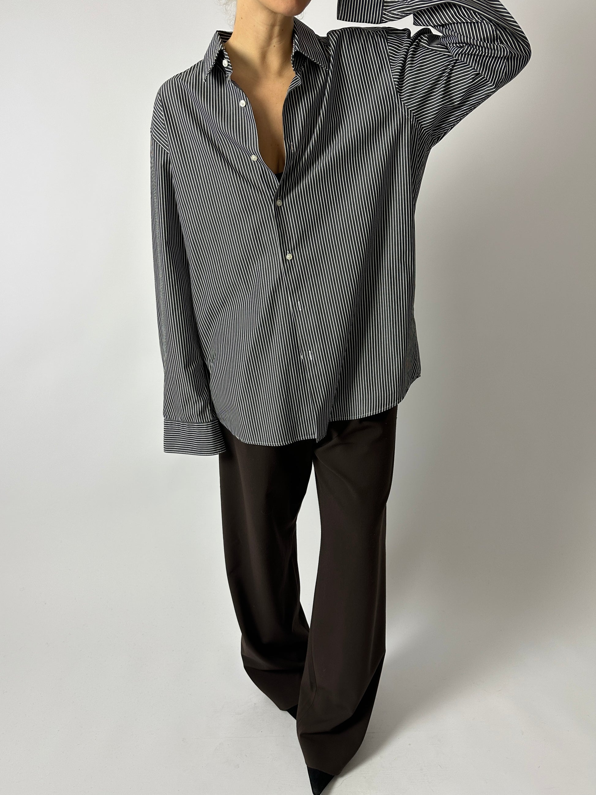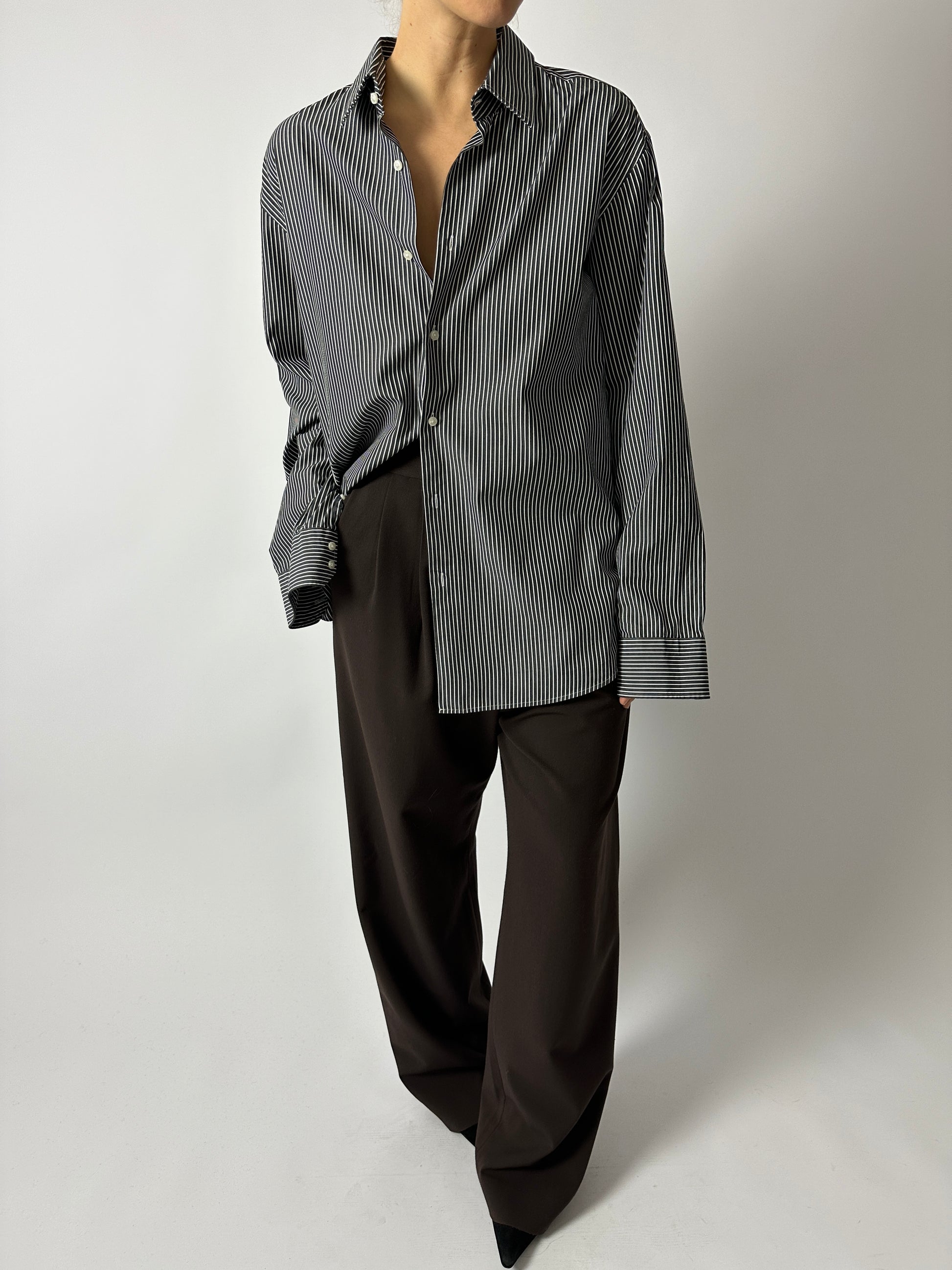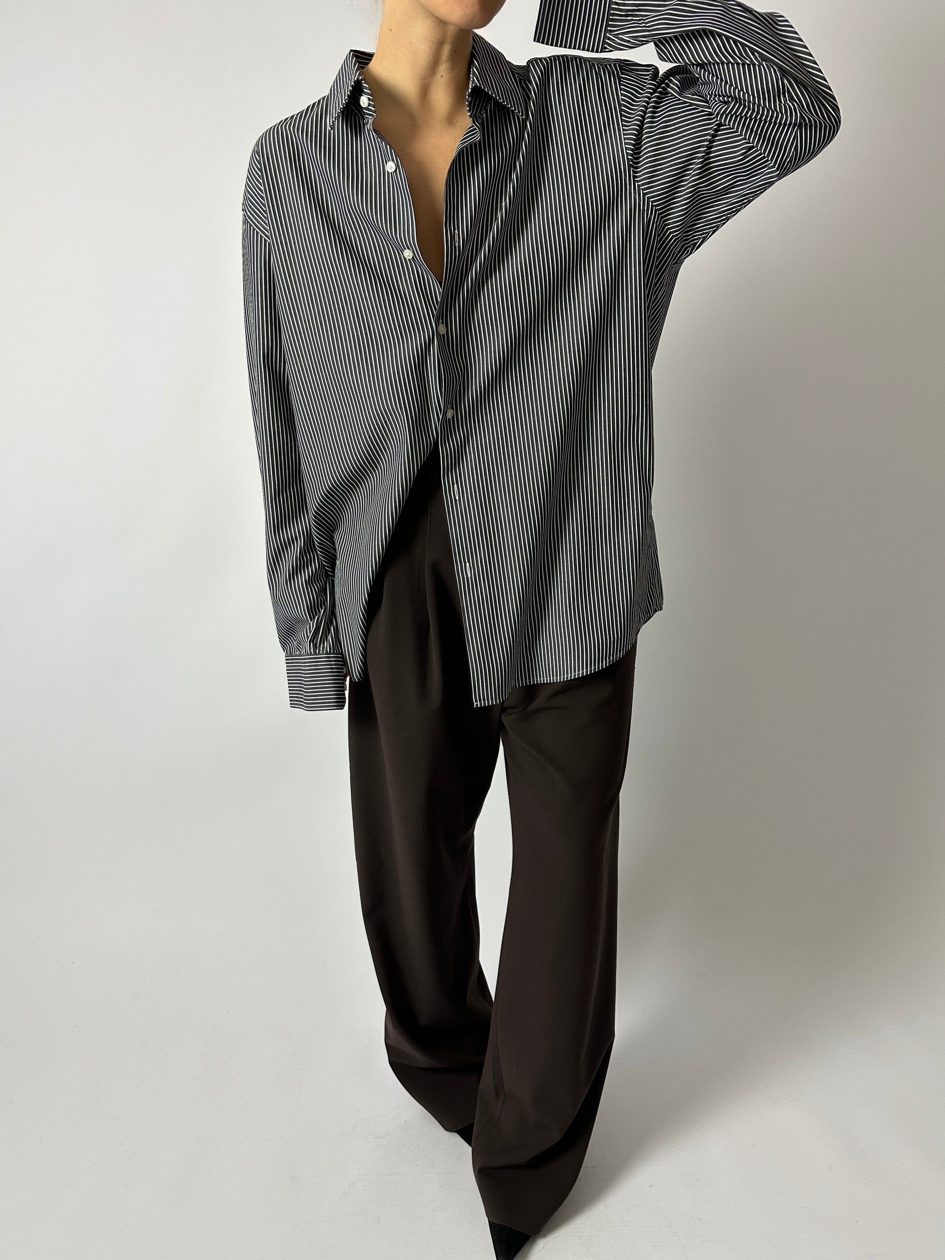 This black-and-white striped shirt is crafted from a soft cotton. Cut for a relaxed fit, it’s perfect to wear oversized for an effortless, laid-back look.