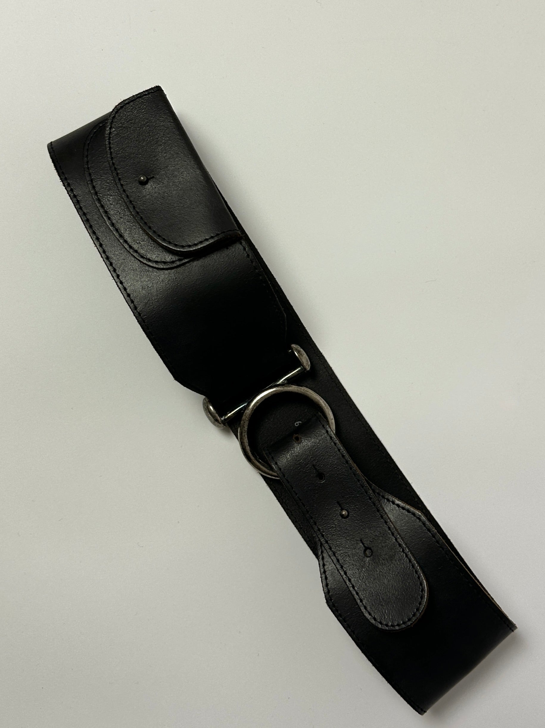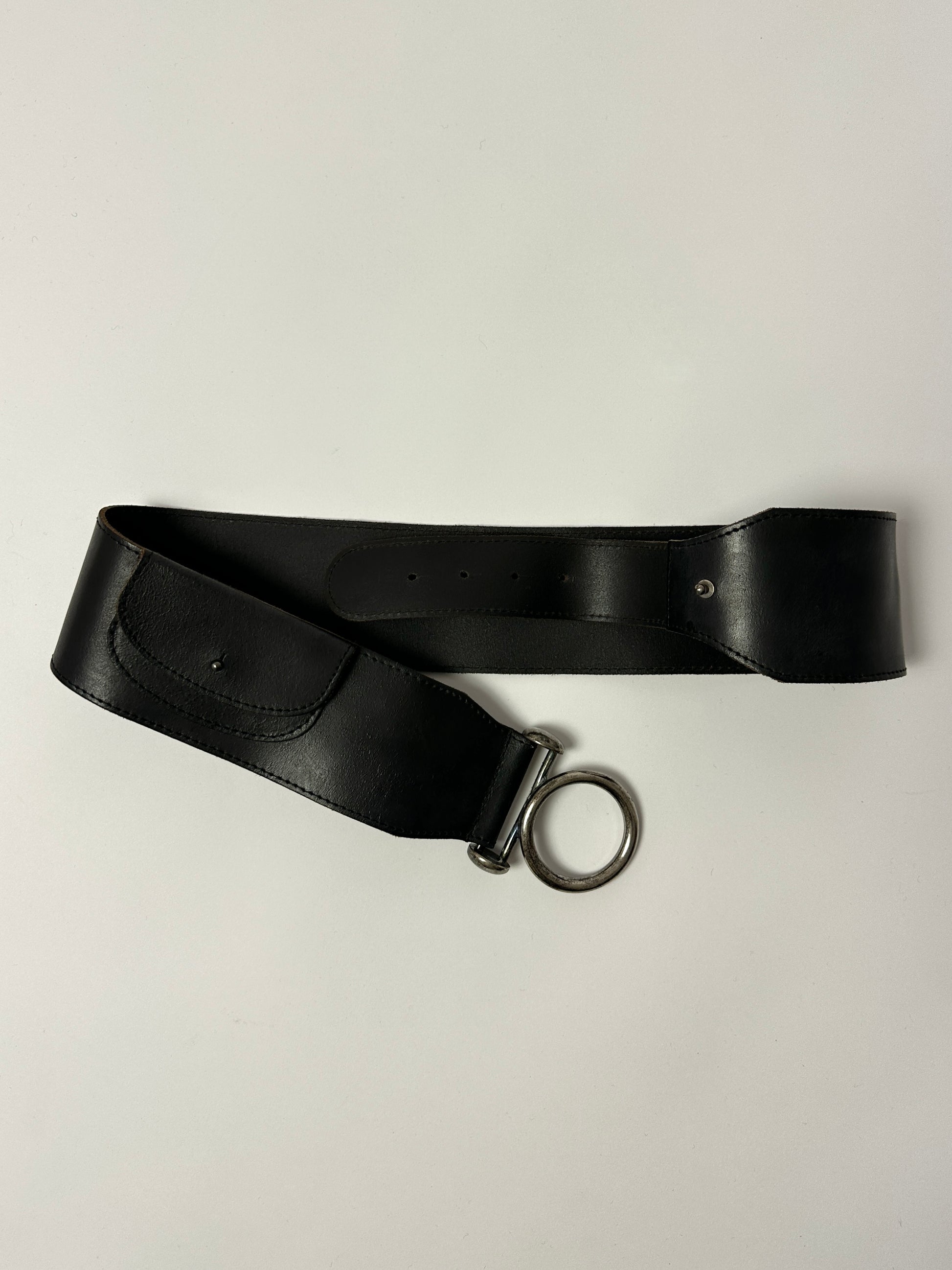A sleek leather belt featuring a small, subtle pocket detail, adding a touch of understated sophistication to any outfit.