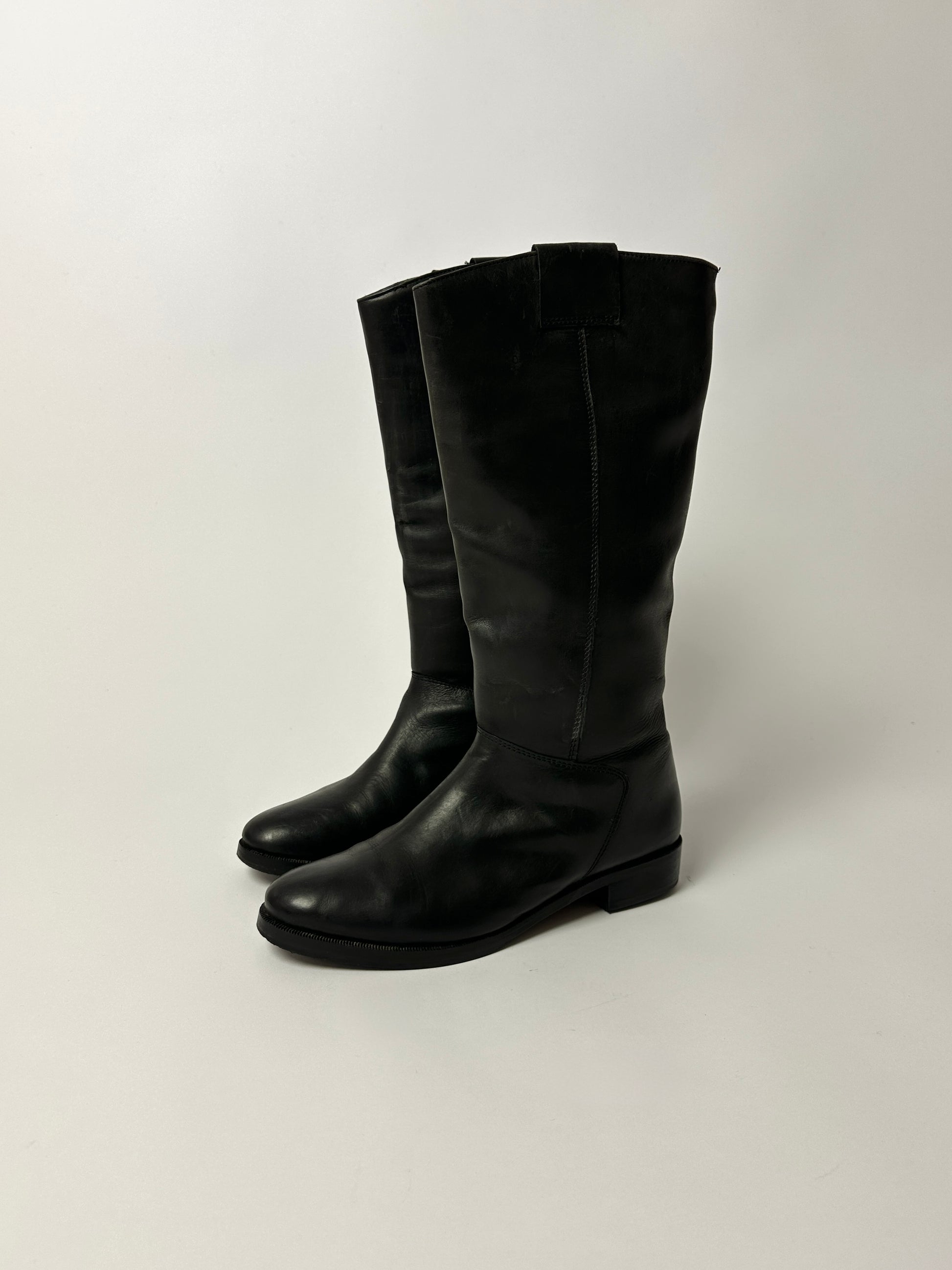 Round-toe leather boots made from genuine leather, offering a sleek, easy-to-wear essential for any wardrobe.