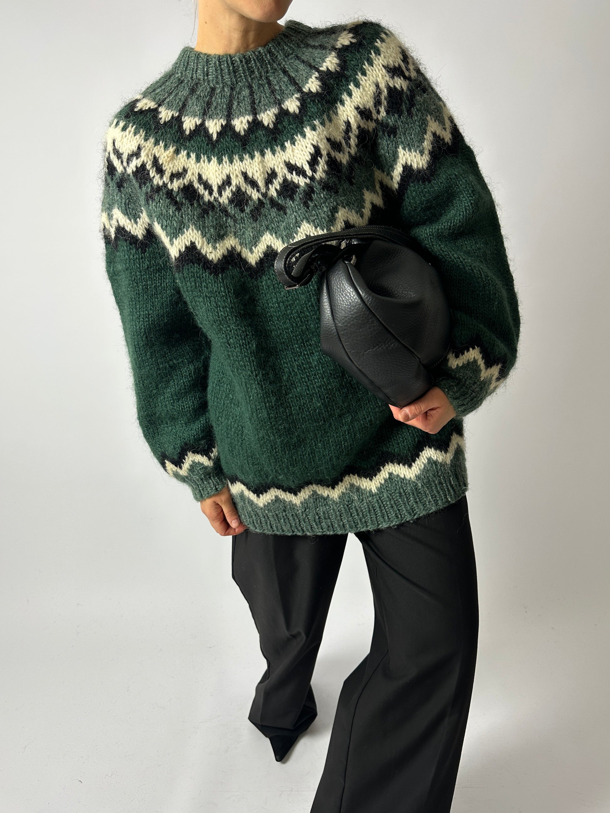 A unique hand-knitted Nordic sweater with a relaxed silhouette. Cozy and textured, it brings warmth and quiet, effortless charm.