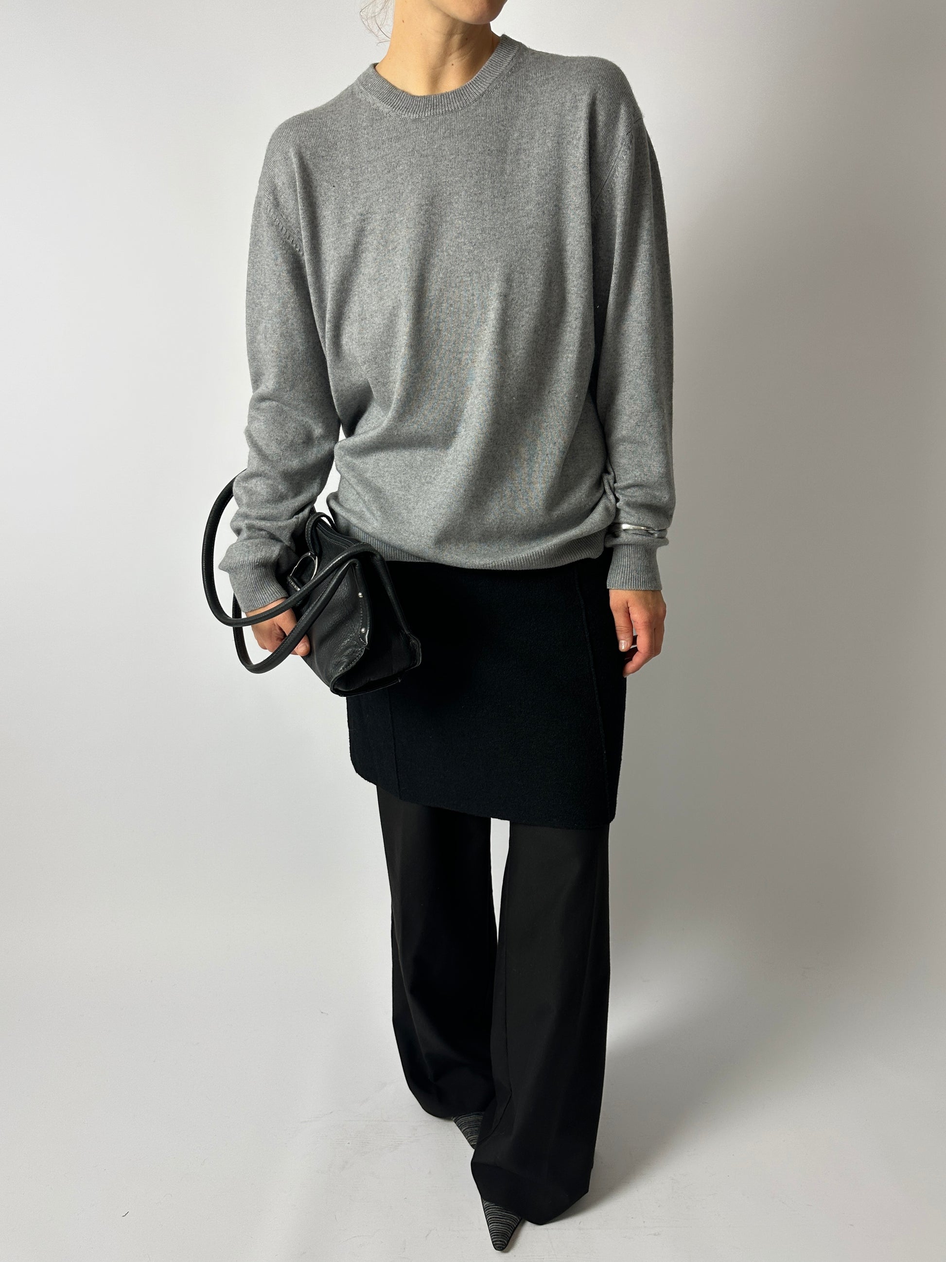 A soft jumper in a fine cashmere–silk blend. Light grey tone with a relaxed fit and classic round neckline. An effortless everyday piece offering ease and quiet comfort.