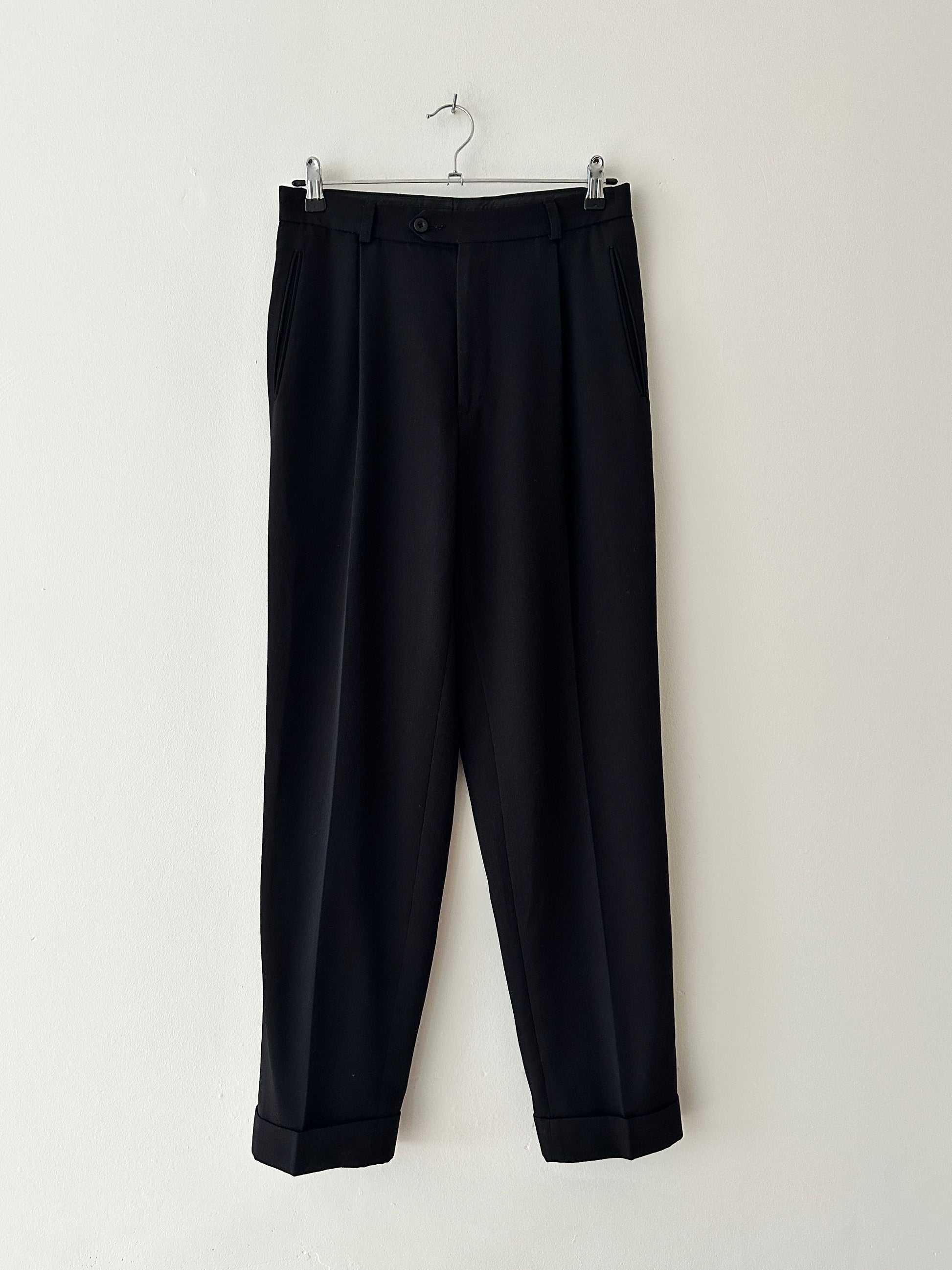 This tailored trousers in lightweight wool, features a mid-to-high waist and a slightly tapered leg. Finished with folded hems, they offer a refined silhouette and timeless elegance, perfect for both casual and polished looks.